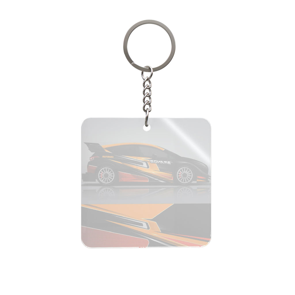 A crisp acrylic square keychain that carries bold automotive energy wherever it goes. The transparent acrylic lets the printed racing graphic show through from both sides, creating depth and a glossy, reflective finish. It feels lightweight on your keys but solid in your hand — built to withstand daily bumps and jostles without cracking or warping. This keychain pairs with a sturdy metal ring and chain for secure attachment to keys, bags, or zipper pulls, and its compact square shape slips easily into pockets. It’s a little piece of speed you can carry every day, whether you’re heading to the track, the garage, or a weekend drive.