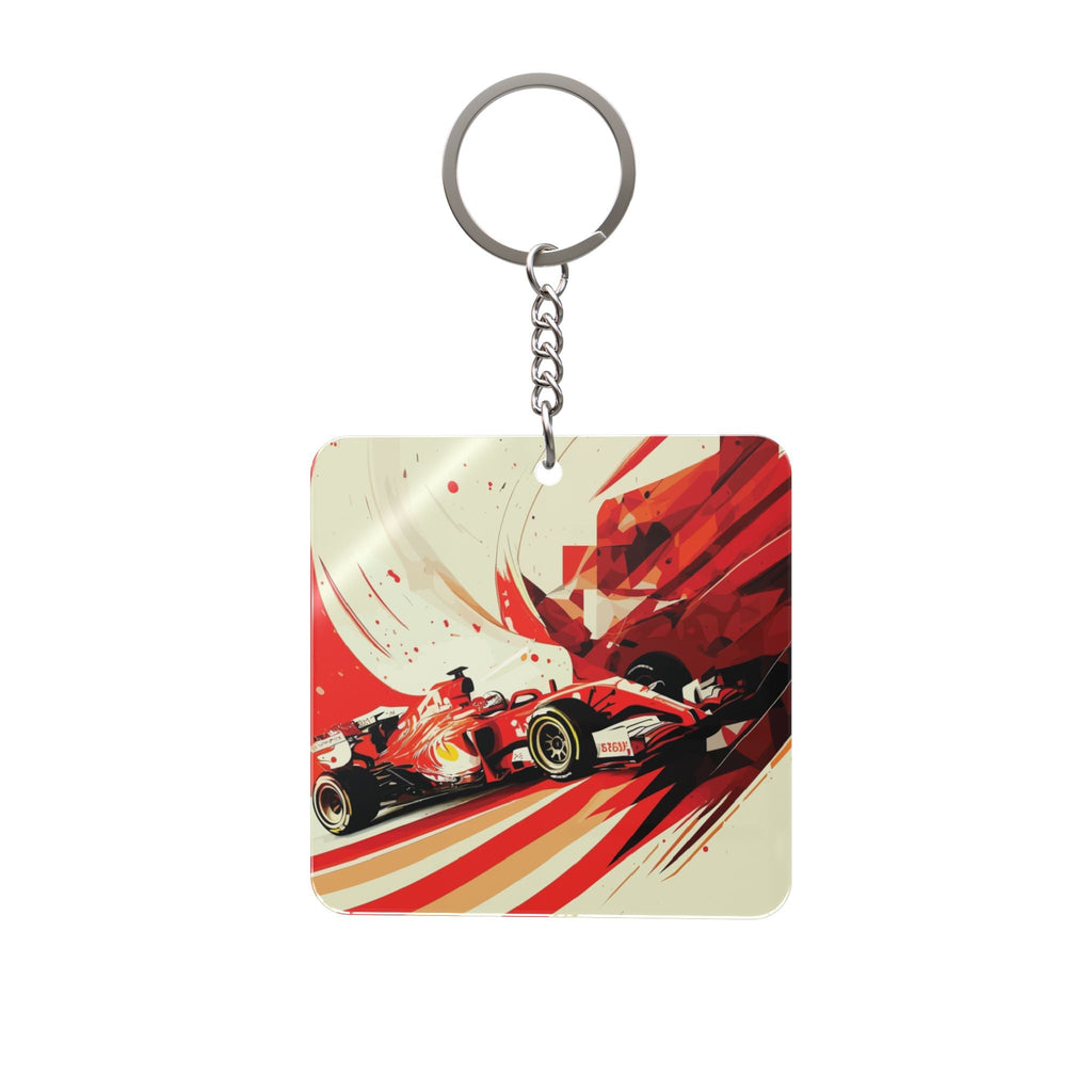 A compact, vibrant acrylic square keychain that brings race-day energy to everyday carry. The glossy transparent surface lets the double-sided printed design shine through with bold reds and dynamic motion lines, capturing the thrill of speed in a small, durable accessory. Lightweight yet sturdy, it hangs confidently from keys, backpacks, or zipper pulls, adding a pop of color and personality to daily gear. Made to withstand bumps and jostles, it keeps the artwork looking fresh while reminding the owner of fast laps, cheering crowds, or a love for motorsport wherever they go.