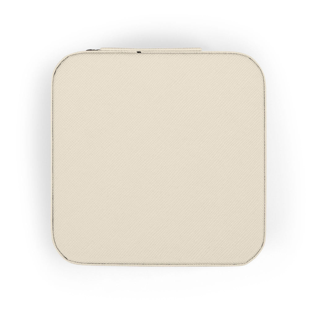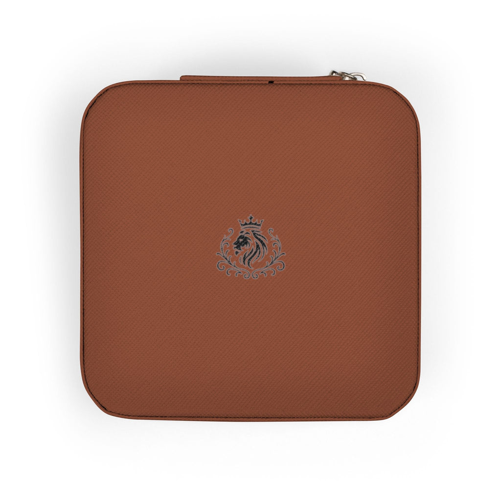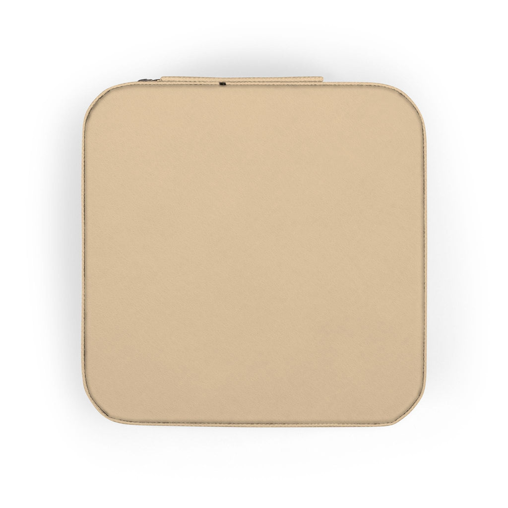 A compact jewelry travel case crafted for people who carry their favorite pieces everywhere. Plush-lined compartments cradle rings, studs, and delicate chains so they arrive tangle-free and scratch-free. The square zip-around design closes securely and slips easily into a daypack or carry-on. Small but thoughtfully organized — ring rolls, divided sections, and necklace hooks keep everyday and travel-only pieces accessible. The soft PU leather exterior resists scuffs while the UV-decorated finish adds a refined look that wears well over time.
