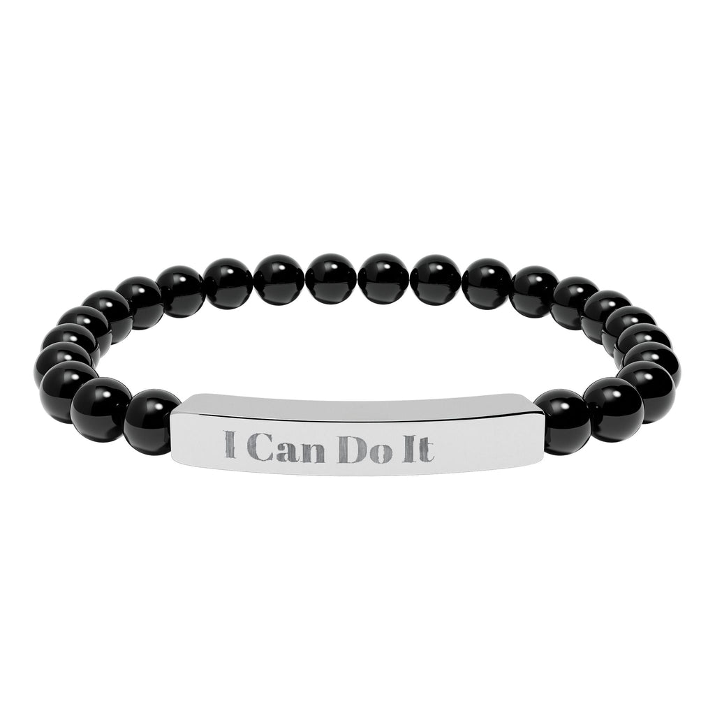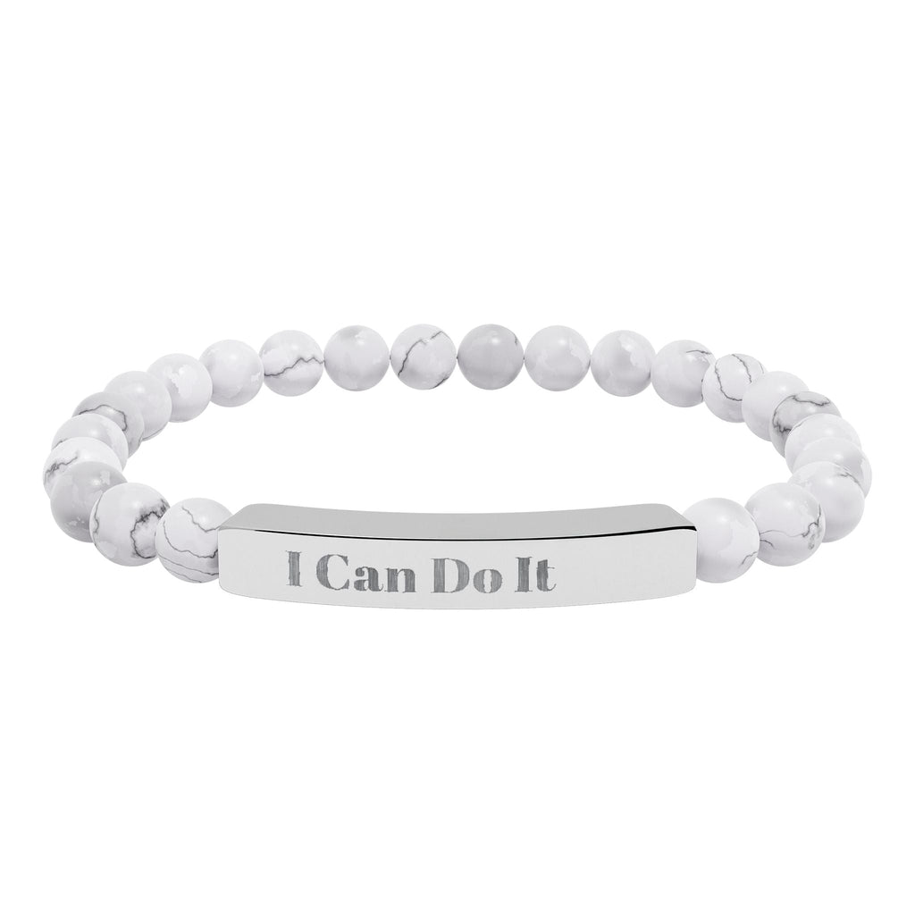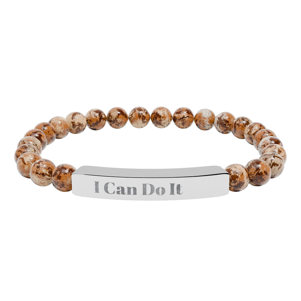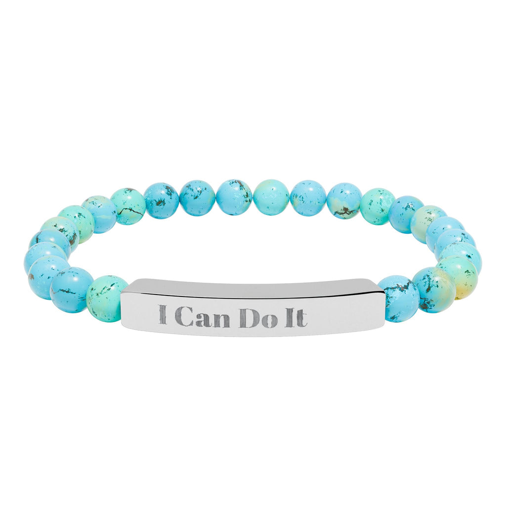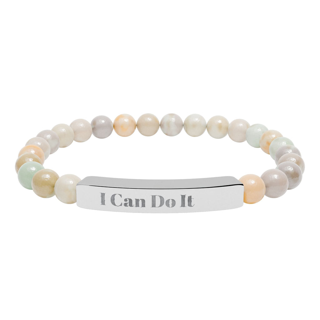 Engraved Natural Stone Stretch Bar Bracelet – "I Can Do It" Inspirational Beaded Bracelet