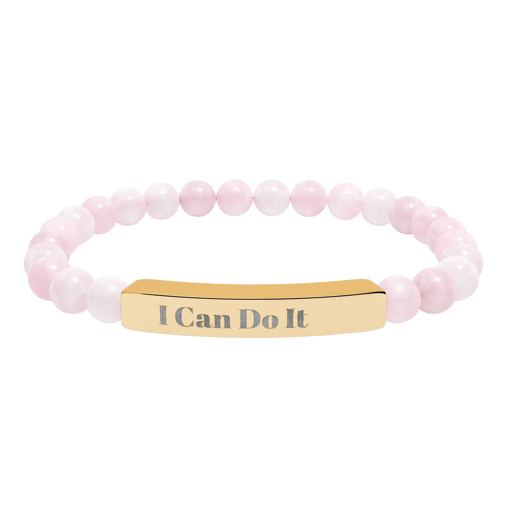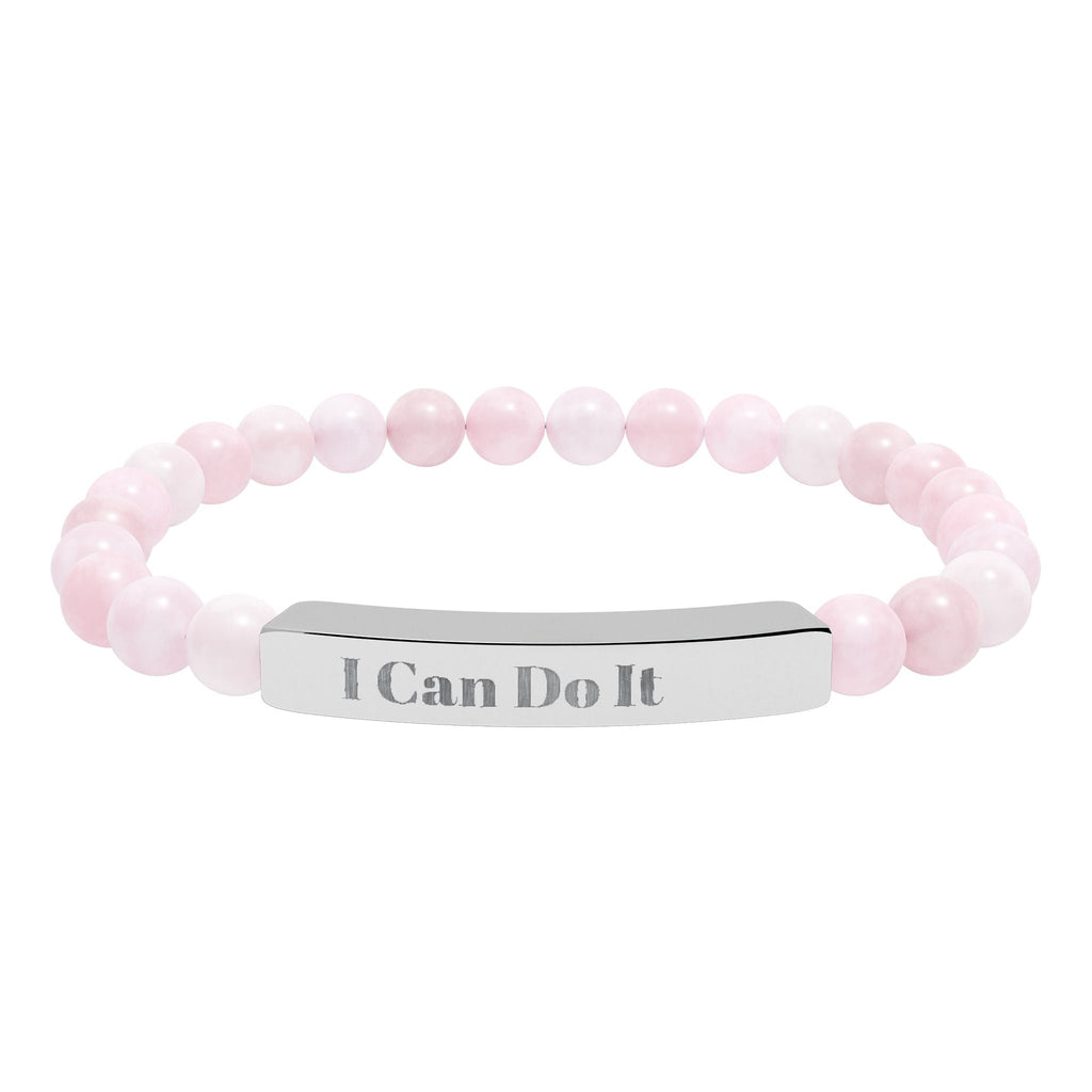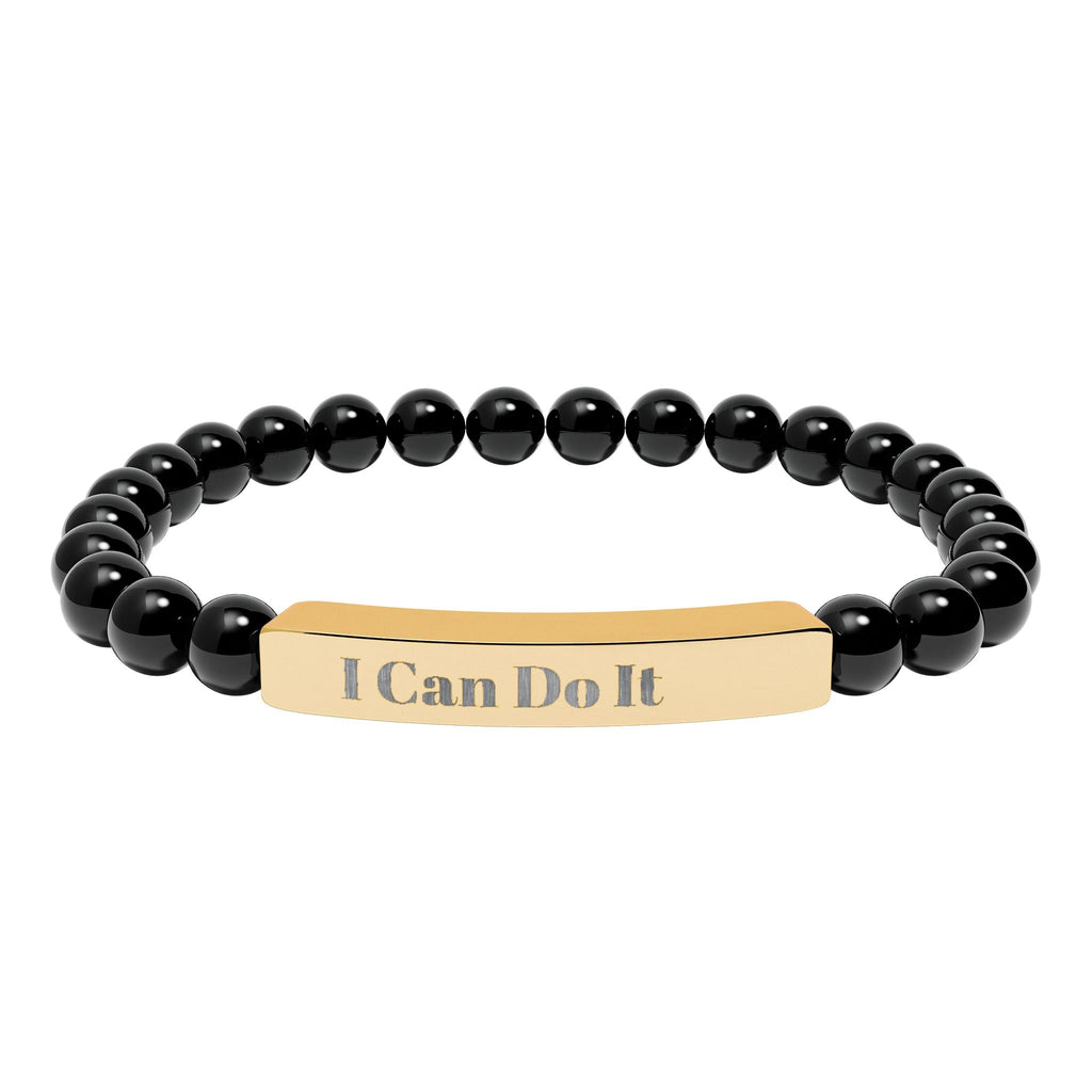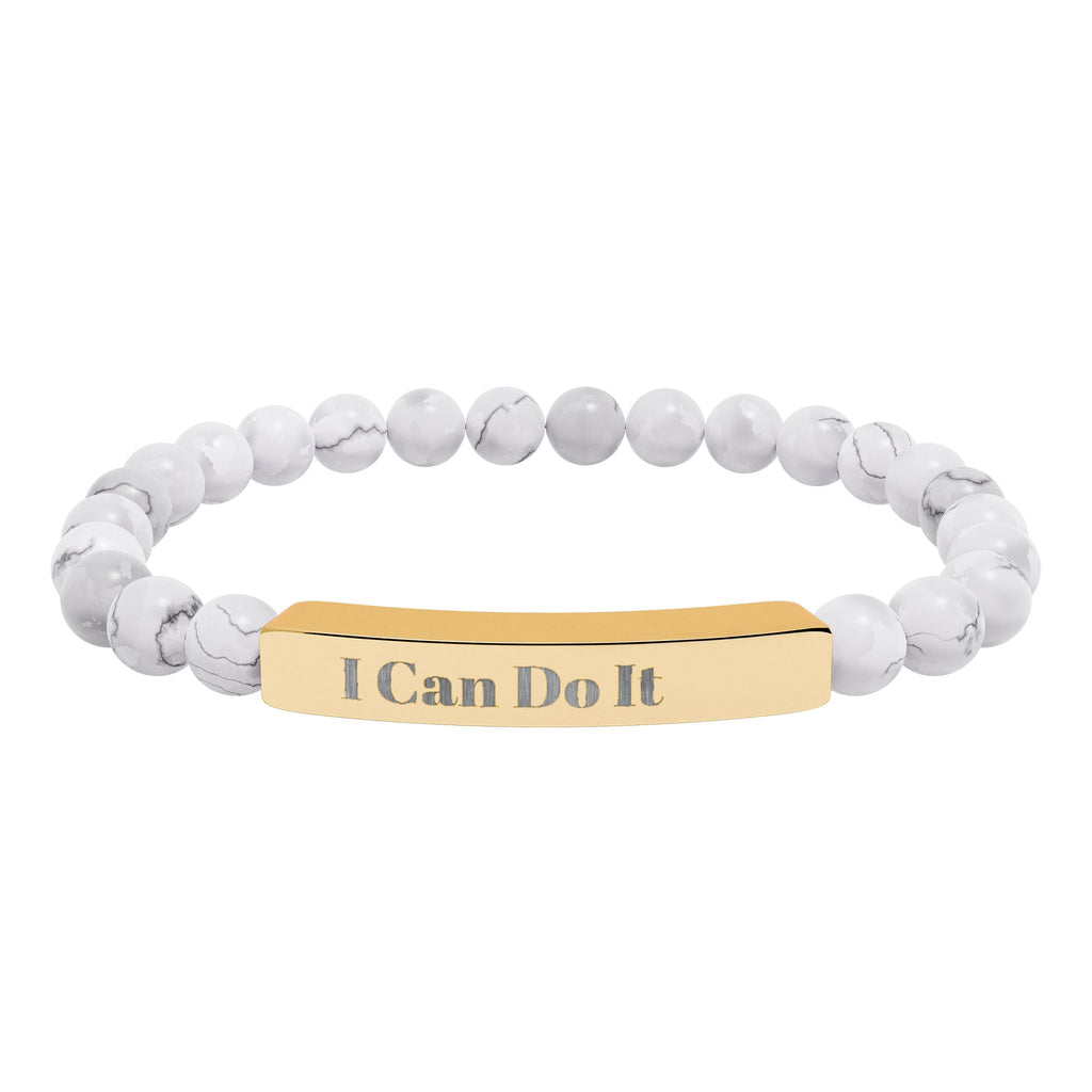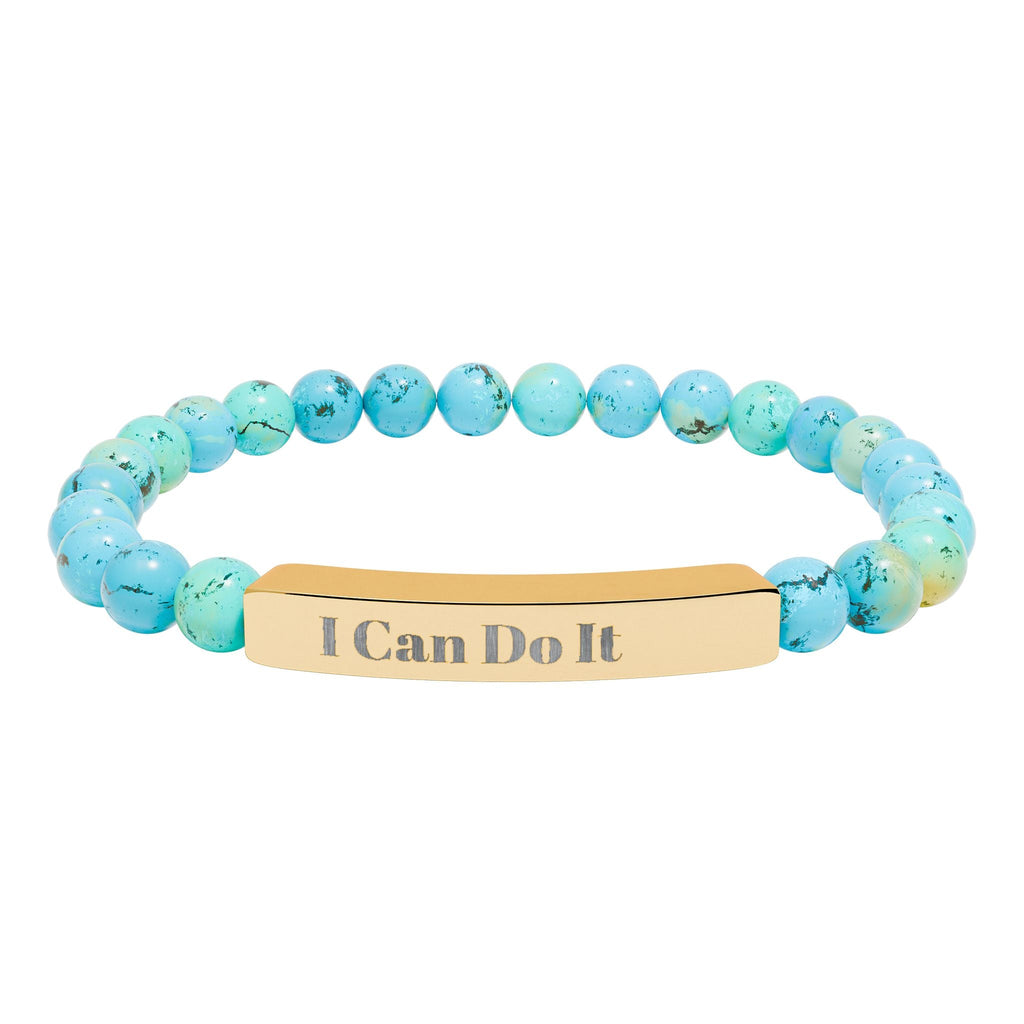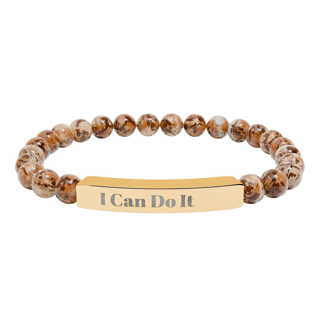 Engraved Natural Stone Stretch Bar Bracelet – "I Can Do It" Inspirational Beaded Bracelet