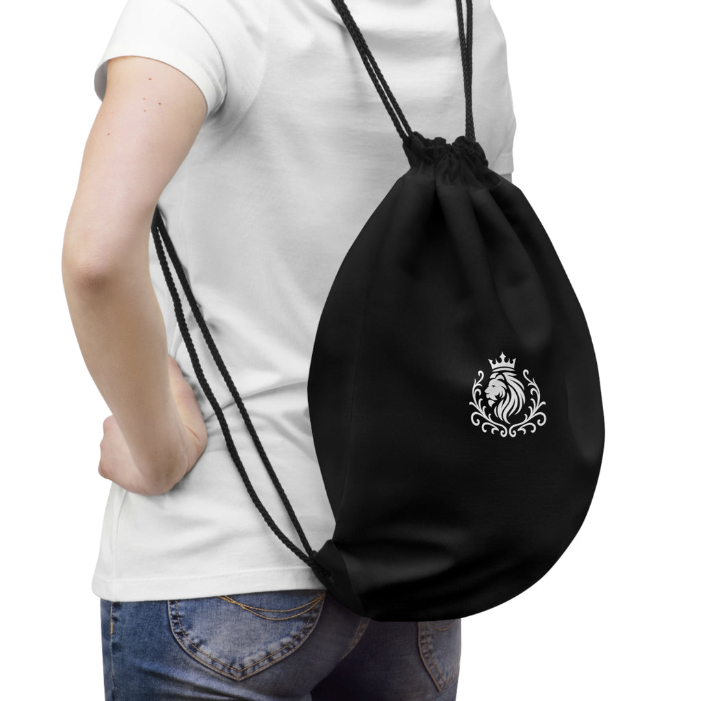 A sleek black drawstring bag with a small, regal crest at the center — understated, confident, and built to last. The lightweight polyester holds its shape and dries fast, so it moves easily from rainy commutes to sweaty gym sessions. Inside, a fully lined interior and a zippered pocket keep small essentials secure: keys, cards, or a phone tucked away while you’re on the go. Metal grommets and reinforced corners add durability where straps meet fabric, while the neutral black and compact crest let this bag blend with streetwear, travel gear, or minimalist everyday carry. Wear it over one shoulder between classes, stash it in a suitcase for weekend trips, or keep it by the door for quick errands — it’s made for people who value function without shouting for attention.