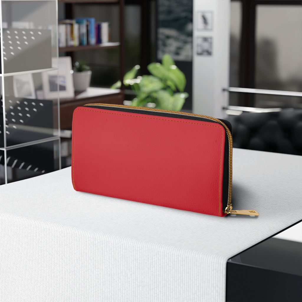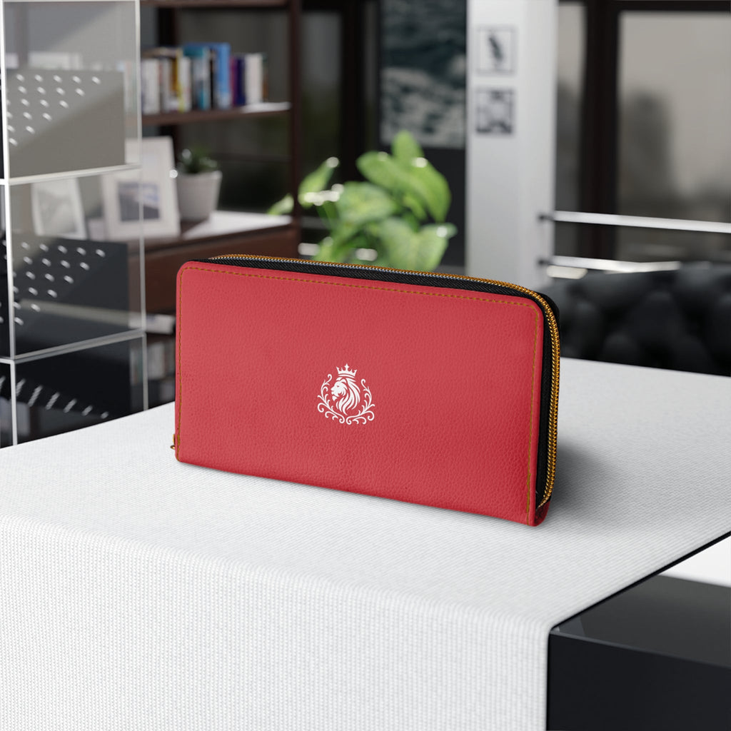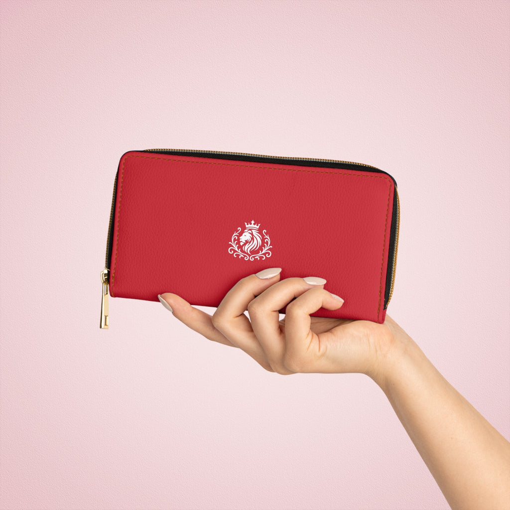 This slim zipper wallet brings quiet elegance to everyday carry. Smooth red PU leather wraps a thoughtful interior with organized slots for cash, cards, coins, and even a checkbook. Gold-thread stitching and matching alloy hardware add a refined contrast that feels both classic and modern. It slips into a tote or crossbody and keeps essentials accessible while showing a subtle crest motif on the front ā a little nod to polished, confident style.