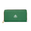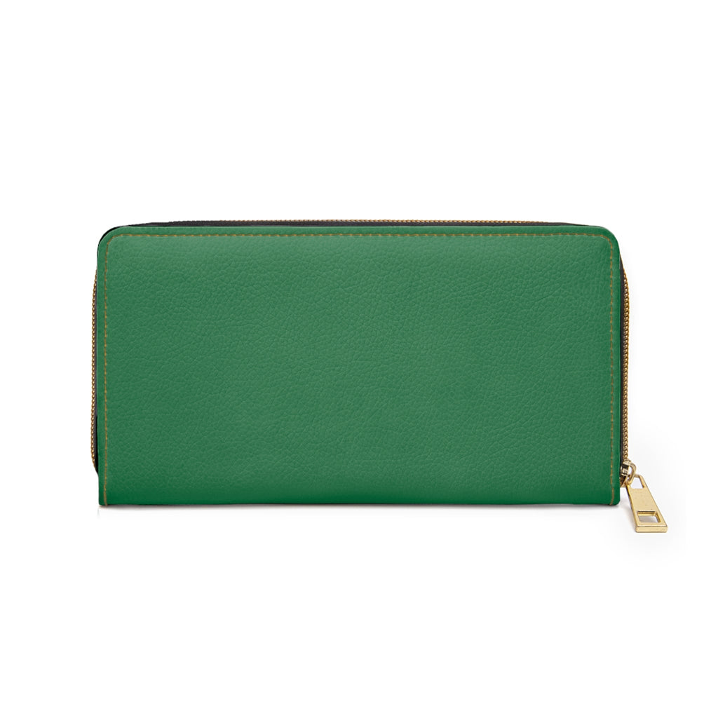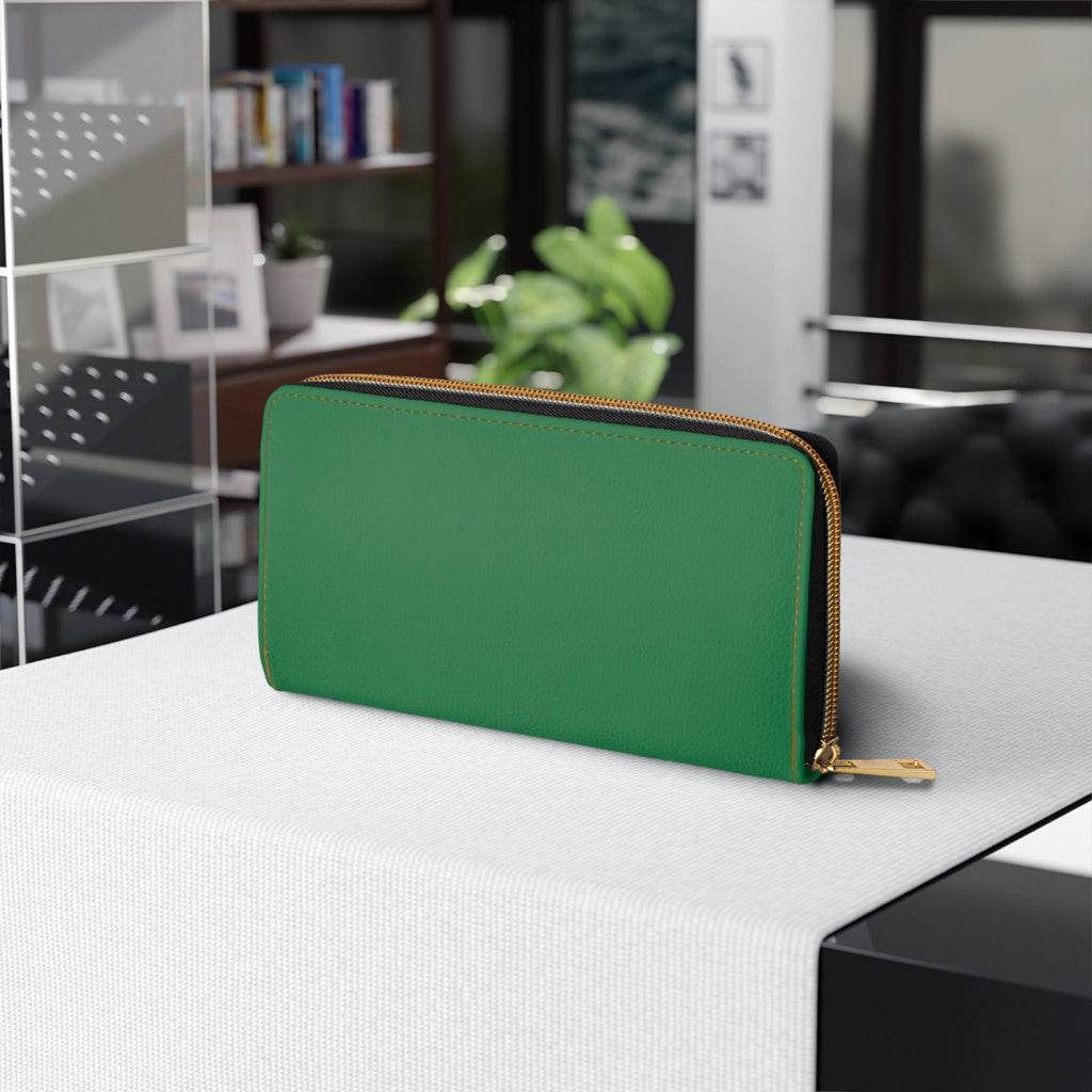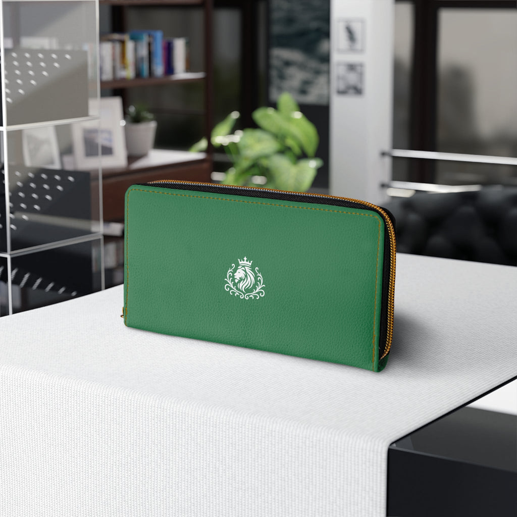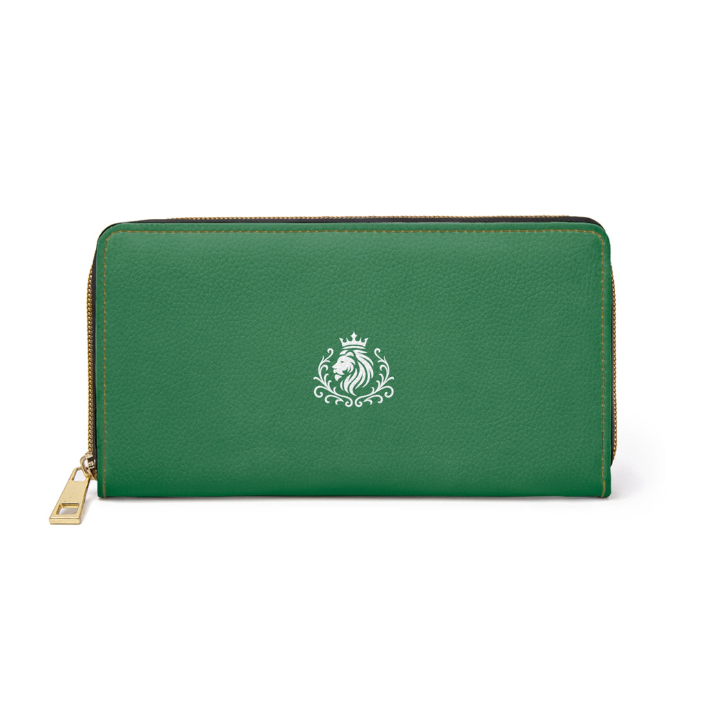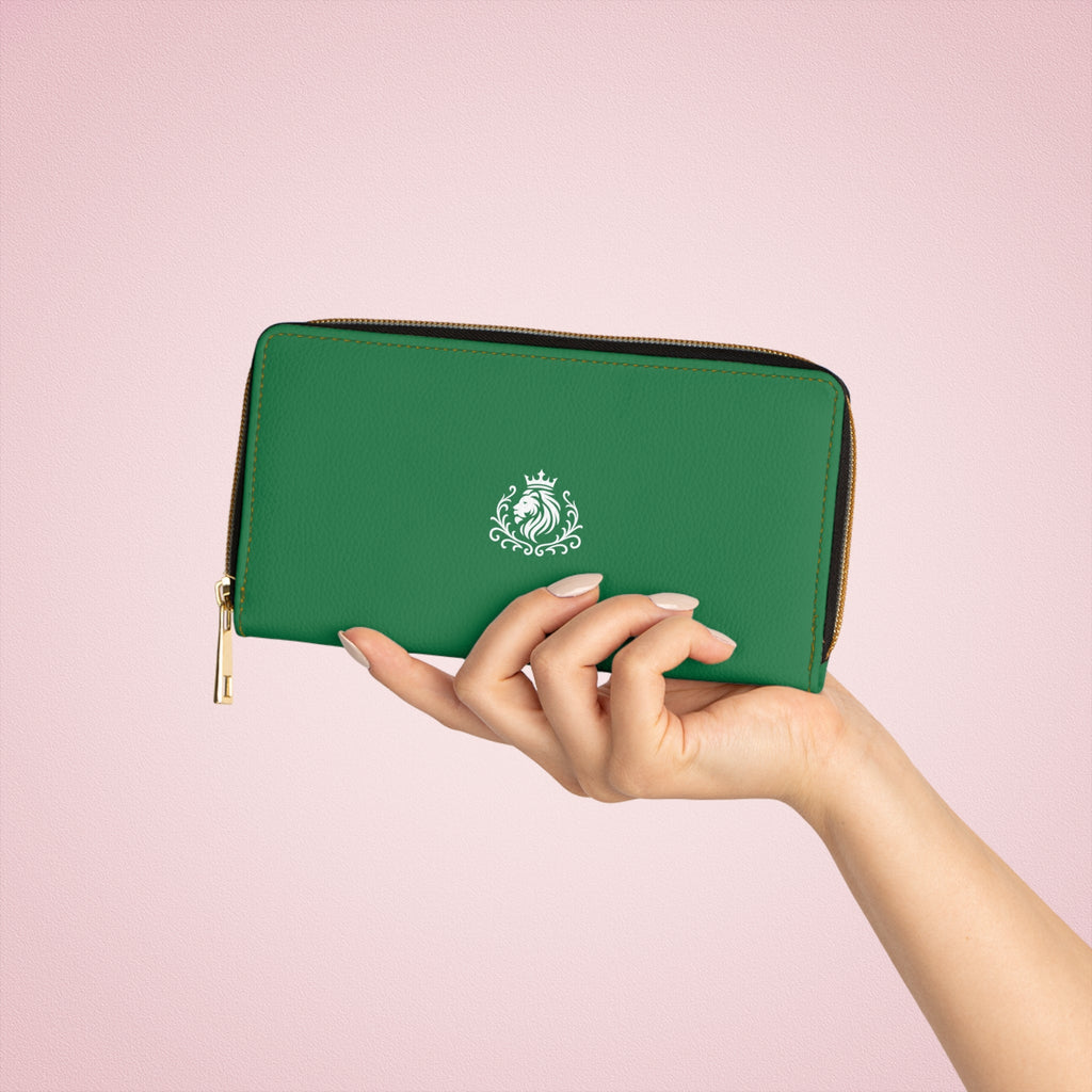 This zip-around wallet brings quiet confidence to your everyday carry. Smooth green PU leather wraps a roomy interior made for real life: card slots for your daily plastic, a full-length cash pocket, a coin compartment, and room for a slim checkbook. The gold-thread stitching and alloy zipper add a refined, slightly vintage edge, while the small crest motif on the front gives it a subtle, personal touch. It slides into a tote or sits neatly in a coat pocket, guarding essentials without fuss. Reach for it when you want organized pockets, a dash of polish, and a color that stands out without shouting.