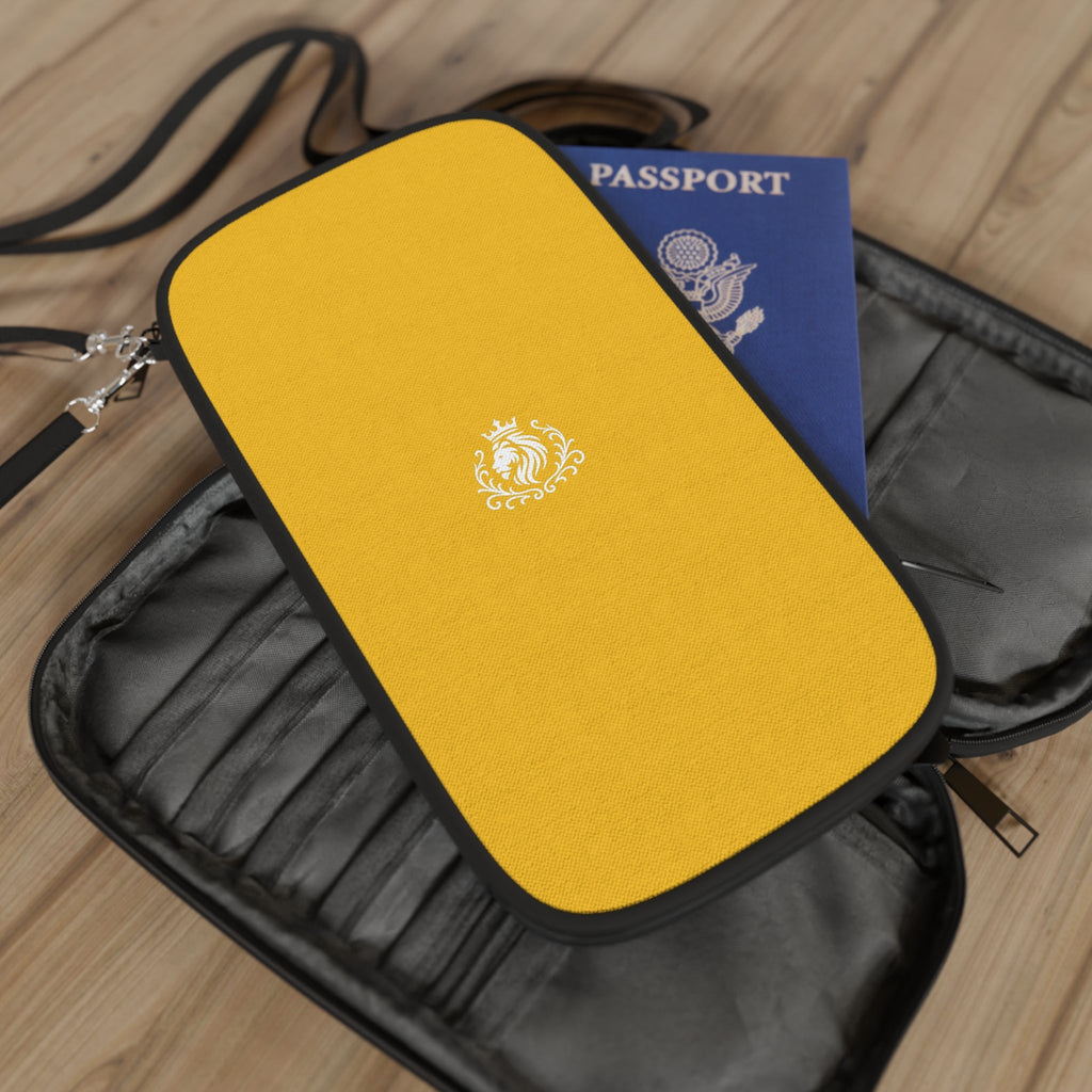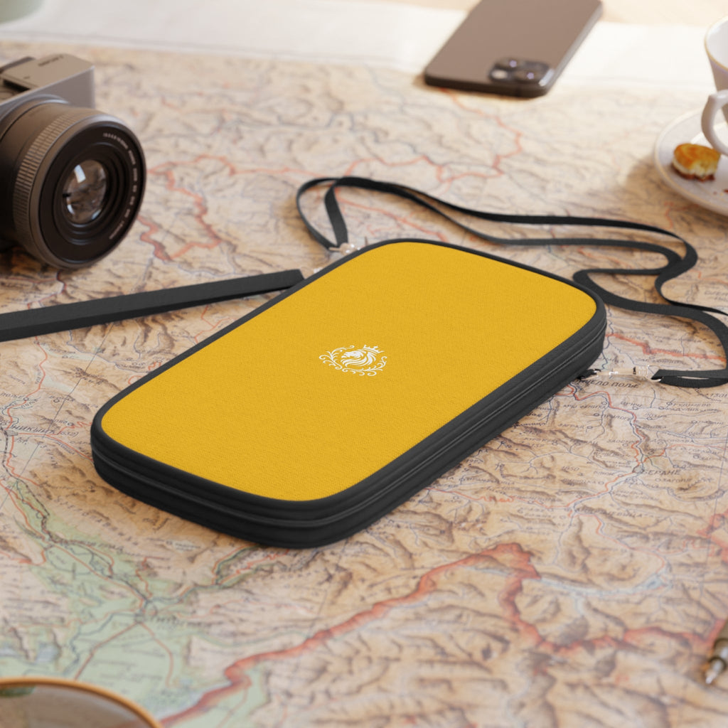 Warm ochre canvas, neat black trim, and a compact, organized interior — this passport wallet feels like calm confidence in your hands. Slim enough to slip into a daypack or carry crossbody on a city walk, it keeps passport, cards, cash and loose change separated so travel flow stays smooth. The durable zipper and alloy hardware give it a reassuring snap, while the detachable shoulder strap and wrist strap make it easy to wear or grab between terminals. Bright printed color holds up to everyday use, and the single-side print keeps the look clean and modern. Bring it on weekend getaways, train trips, or market strolls when you want style that travels light.