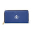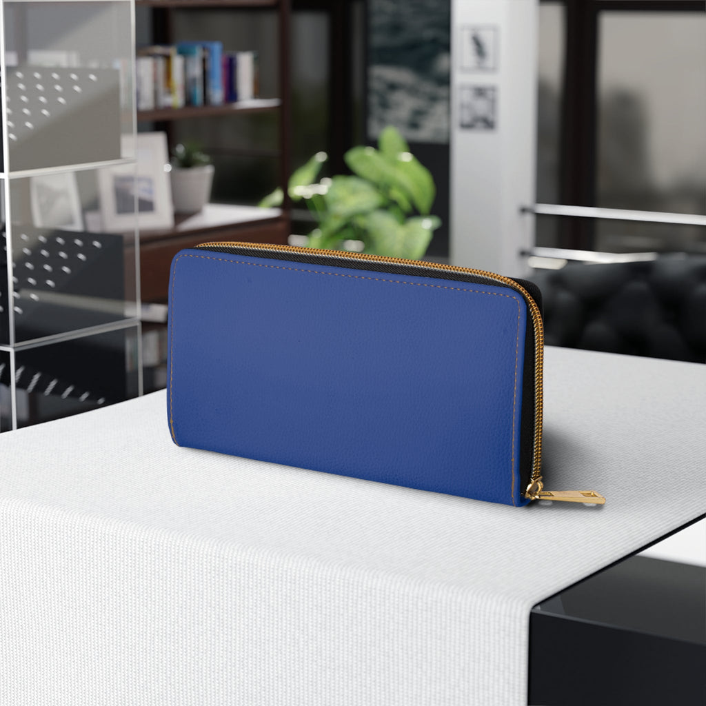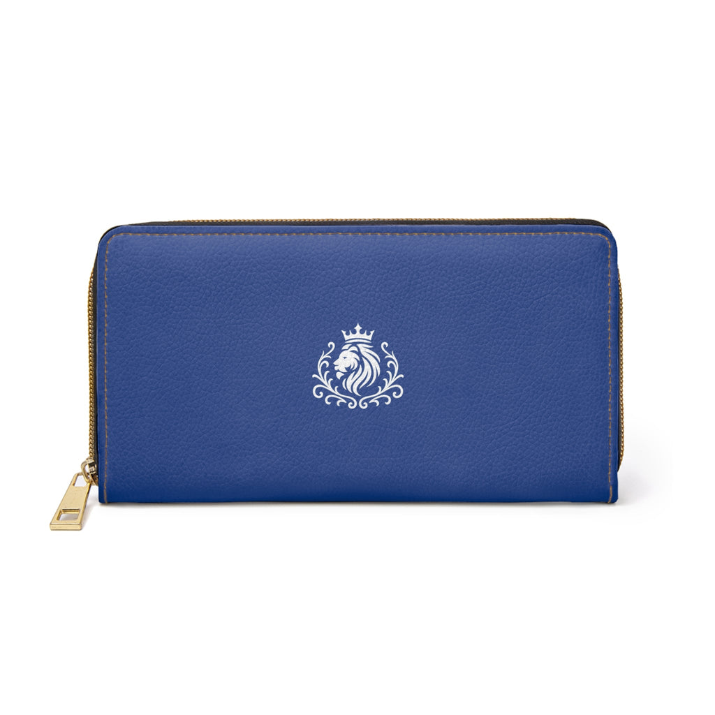 This slim zipper wallet brings everyday order with a touch of refined charm. Smooth blue PU leather feels soft to the touch while staying resilient against daily wear. The gold-tone zipper and matching stitchwork give a classic, slightly regal edge that complements the subtle crest emblem on the front. Inside, thoughtfully arranged pockets hold cash, cards, coins, and a checkbook without bulk—carry it alone or slide it into a larger tote for errands, workdays, or travel. It’s for someone who likes neatness, small luxuries, and an understated statement of personal style.