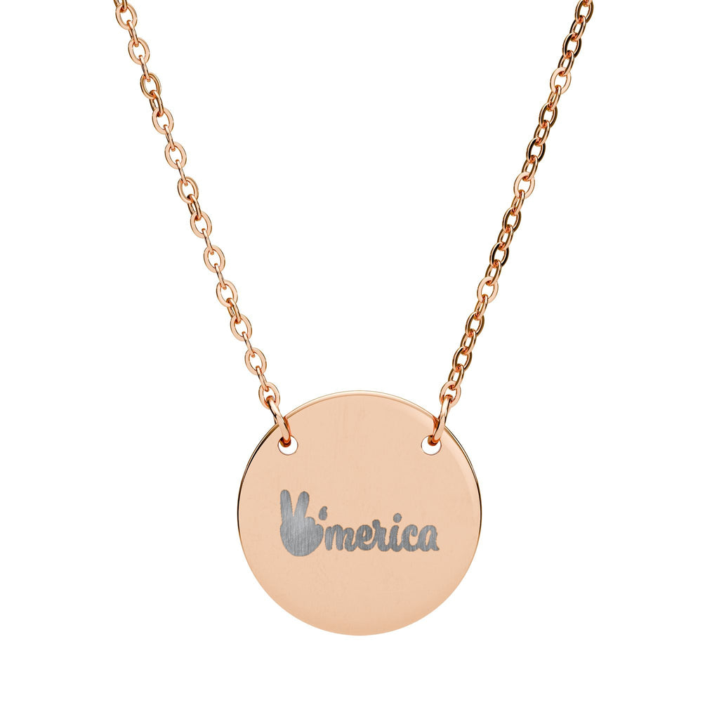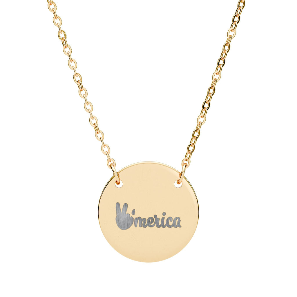 Engraved Circle Necklace — "America" Patriotic Pendant