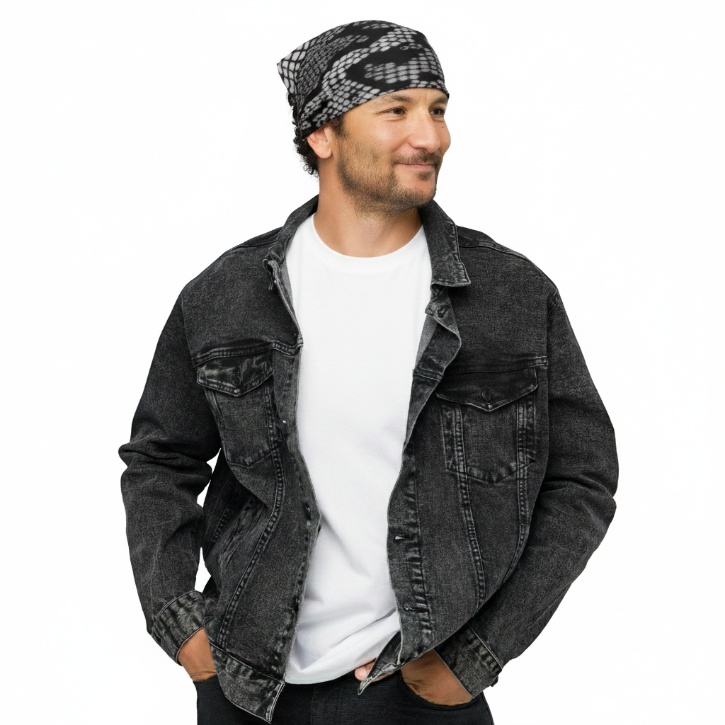 The Manly Mania Bandana is a bold, versatile accessory that makes a statement with every wear. Perfect as a headband, necktie, armband, or even a matching accessory for your pet, it adds style and flair to any outfit. Crafted from lightweight, breathable fabric with moisture-wicking properties and UPF50+ protection, this bandana combines function with fashion. Durable double-folded edges and a single-sided all-over print ensure lasting quality, while the OEKO-TEX and GRS-certified recycled fabric highlights a commitment to sustainability. A modern, luxe essential for everyday looks.