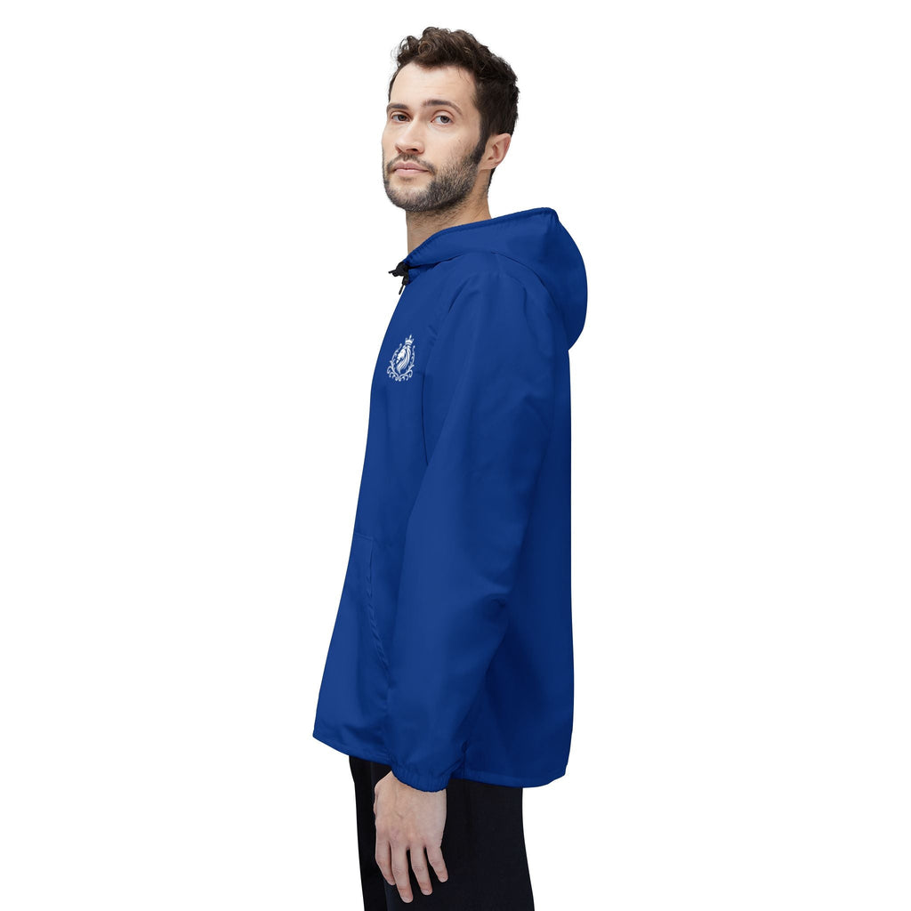 This lightweight windbreaker brings quiet confidence to breezy days. The streamlined blue shell slips on easily, tucks into a backpack, and keeps wind and light rain at bay while you move. Elastic cuffs and a full front zipper lock in warmth without feeling bulky. Two roomy side pockets keep small essentials close. The subtle chest emblem adds a touch of character without shouting — wearable every time you want to stay active, commute, or linger outdoors when skies are gray. It runs a touch small, so consider sizing up for layering.