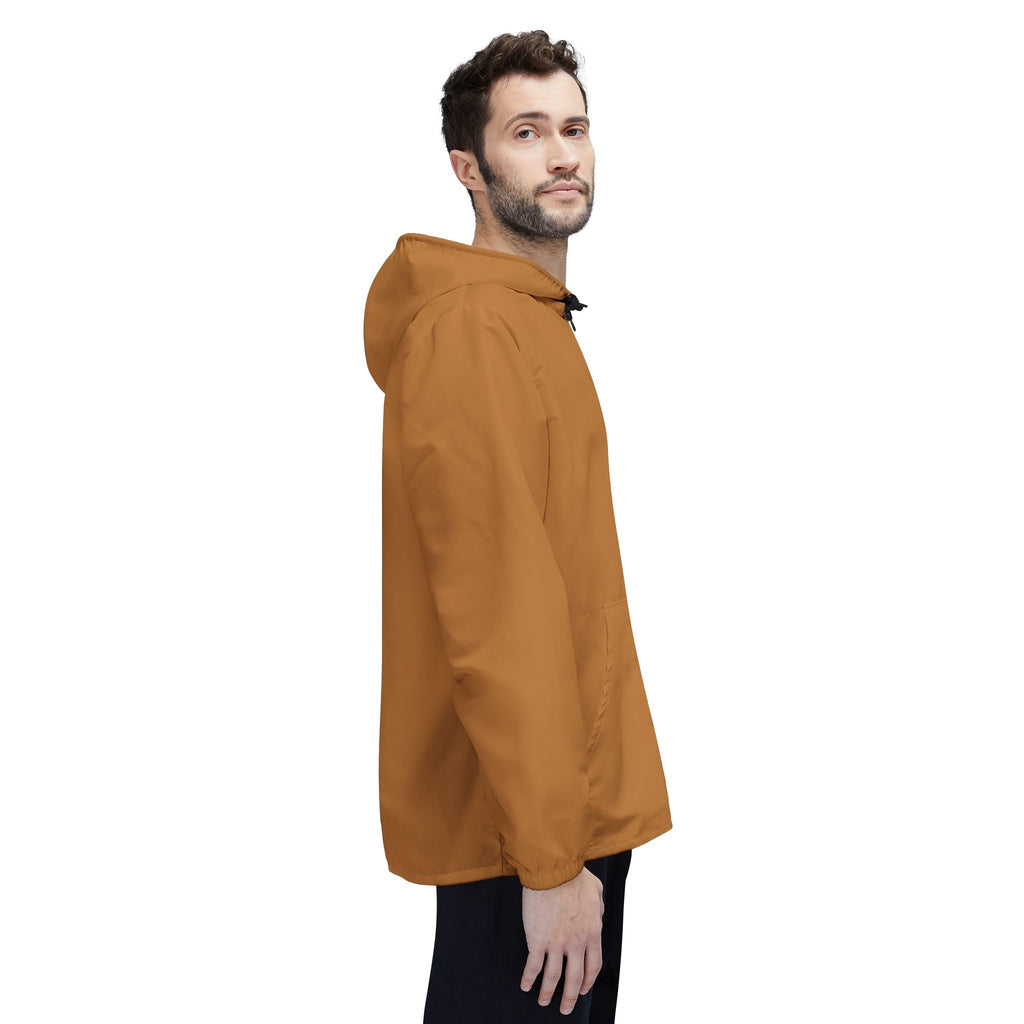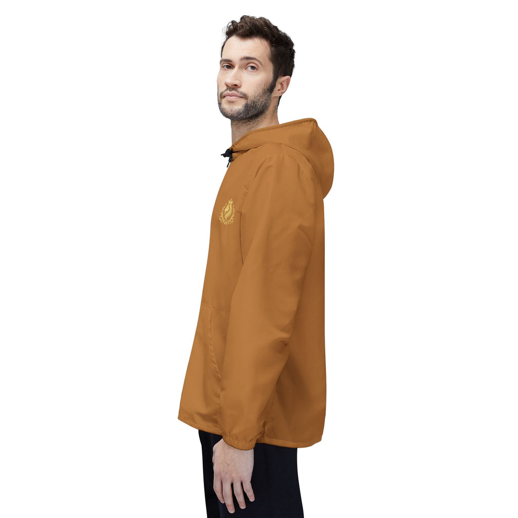 This lightweight windbreaker brings warm, autumnal energy to blustery days. The smooth 100% polyester shell sheds wind and light rain while vibrant printing keeps the rich tan tone looking alive through wear. Elastic cuffs and a full front zipper lock out drafts; roomy side pockets hold gloves or small essentials. The subtle emblem on the chest gives a quietly confident vibe — the kind that travels from weekend trails to late-afternoon coffee runs. Packable and low-maintenance, it layers cleanly over a sweater or tee for transitional weather when you want movement without bulk.