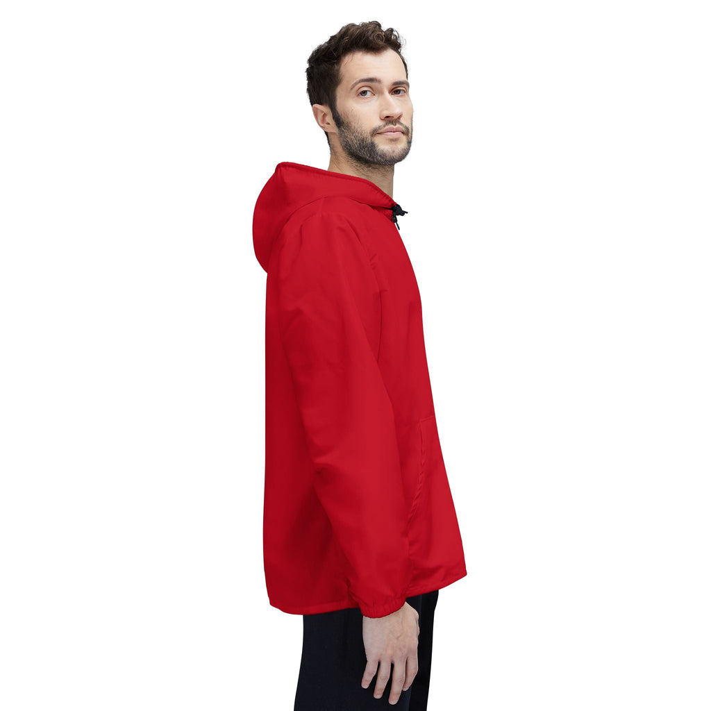 This lightweight windbreaker blends everyday practicality with a bold, wearable color. The smooth polyester shell sheds wind and light rain while drying fast after an unexpected drizzle. Elastic cuffs and a full front zipper keep the silhouette neat and adjustable. Two roomy front pockets hold your phone and small essentials when you’re on the move. The hooded design and crisp, vibrant print make it an energetic layer for walks, commutes, or weekend errands — easy to toss on and go.
