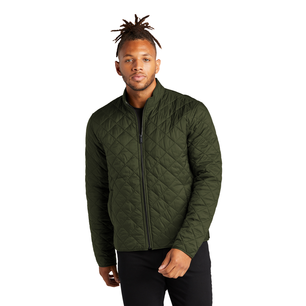 This cropped-collar quilted jacket blends clean utilitarian lines with a subtly elevated finish. The diamond-quilted shell sits close to the body, blocking wind while the water-repellent nylon keeps light rain at bay. A molded black zipper and angled welt pockets give it a pared-back, functional look that suits city streets and weekend escapes. Wear it over a tee for layered warmth or under a heavier coat when temperatures drop — it adds structure without bulk and carries embroidered details with quiet confidence.