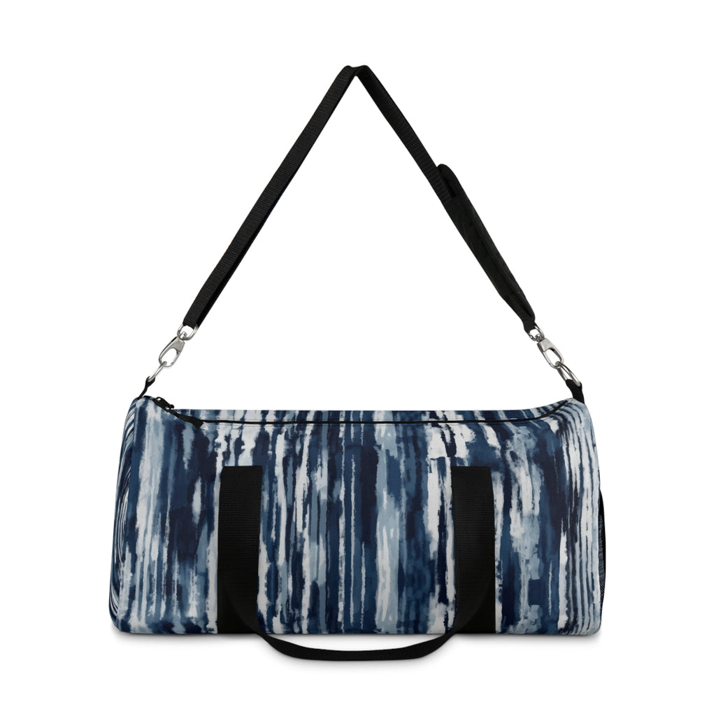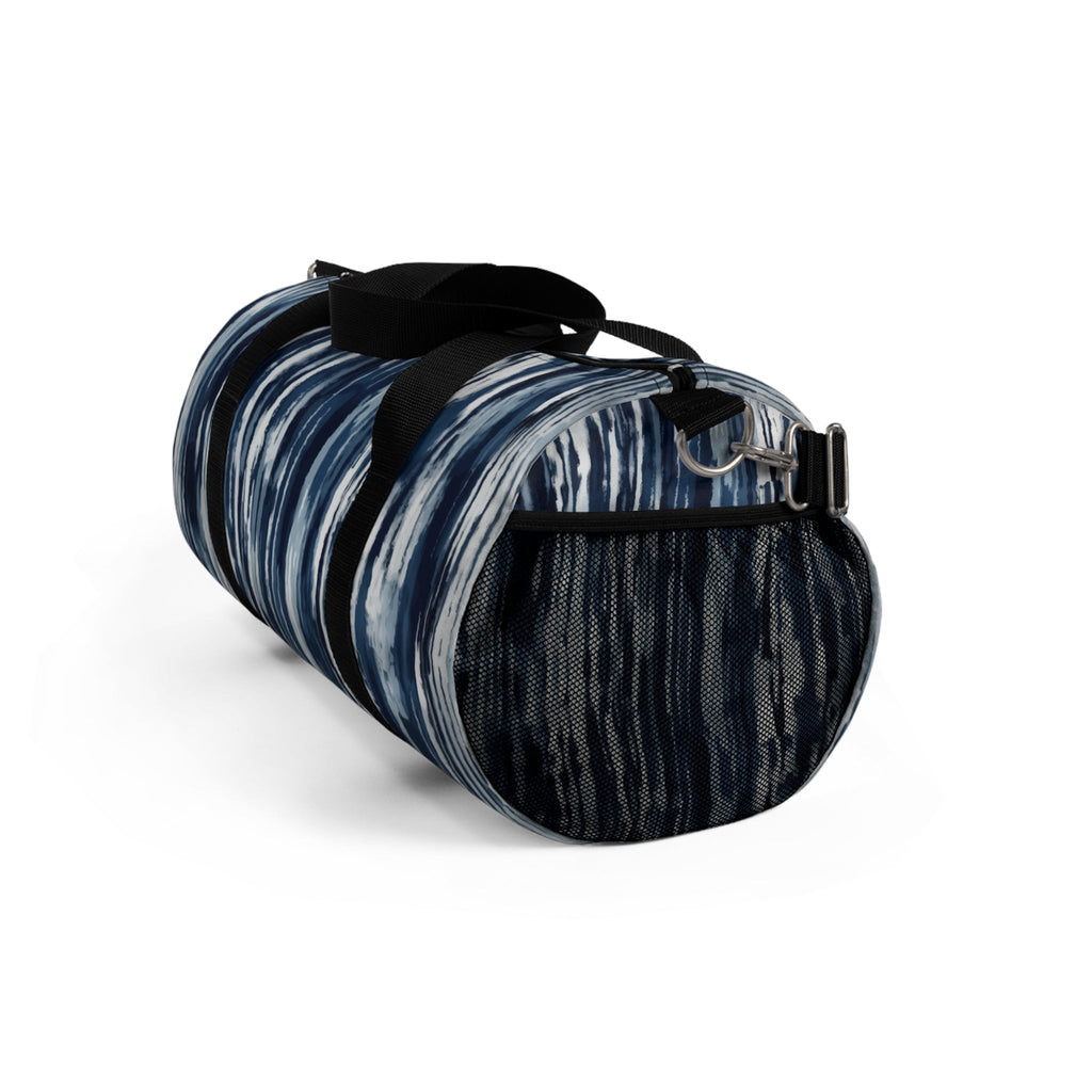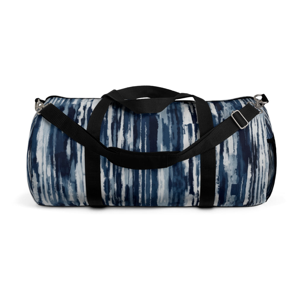 A compact, weather-ready duffel that travels like a trusted companion. The brushed navy and white wash pattern reads like wind-swept waves — relaxed but deliberate. Stash gym shoes, a weekender’s essentials, or camera gear in the roomy main compartment, then keep small valuables zipped inside the internal pocket with name tag. The adjustable, removable padded shoulder strap and sturdy carry handles make moving through crowded transit or across a parking lot effortless. Built from tough polyester Oxford canvas, it resists shape shift and dries quickly after rain or sweat. Thoughtful metal hardware and neat stitching give it an honest, lived-in look that fits into everyday routines without fuss.