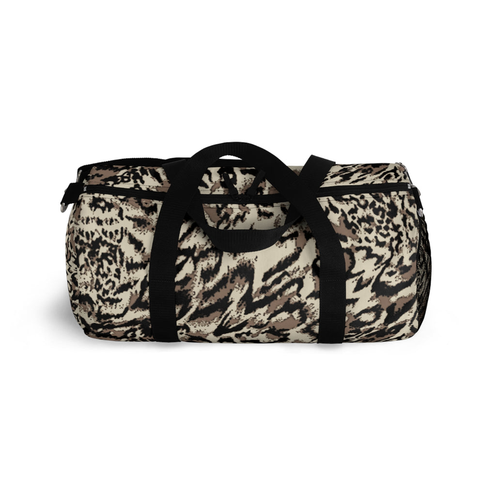 This compact duffel brings bold, animal-inspired style to every short trip and daily routine. The supple Oxford polyester holds its shape while the double zipper opens wide for quick packing. Inside, a zippered pocket with a sewn name tag keeps small items organized and identifiable; an exterior mesh side pocket is ready for a water bottle or wet gloves. Carry it hands-free on the padded, adjustable shoulder strap or by the reinforced webbing handles. Rugged hardware and quick-drying fabric make this duffel ready for gym sessions, weekend escapes, or rides on public transit—wherever a standout print and reliable construction matter.